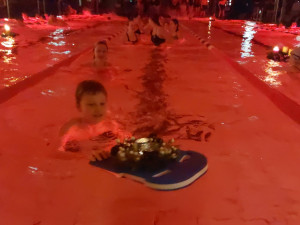 Nach Mitternacht waren wir noch mit sieben Schwimmerinnen und Schwimmern am Start, die unermüdlich weiterschwammen und sich gegenseitig motivierten. Dank dieses bemerkenswerten Durchhaltevermögens und des starken Teamzusammenhalts konnten wir unser Ziel fest im Blick behalten.